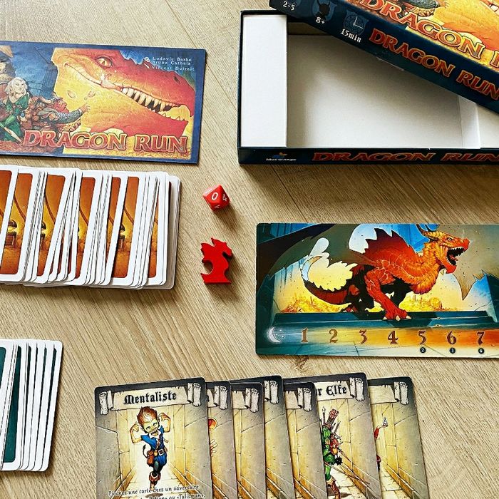 🐉 Jeu de Plateau et Cartes ludique en parfait état et complet. Entre le JDR et le TCG, idéal pour les amoureux d'Heroïc Fantasy avec une bonne dose d'humour. Soirée à pleurer de rire garantie ! ----- 🗣️ "Les aventuriers viennent de pénétrer dans l'antre du dragon, paisiblement endormi sur son fabuleux trésor. Mais soudain il ouvre l'oeil et découvre les minuscules intrus que nous sommes. Parviendrons nous à sortir vivant de la montagne, et pourrons-nous récupérer un maximum de trésors? ✏️ Bruno Cathala, Ludovic Barbe 🎨 Vincent Dutrait 🏷️ Blue Orange (2014) 👥 2 - 5 joueurs (à partir de 8 ans) ⌛ Moins de 30 minutes