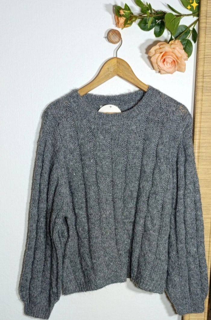 Pull femme torsadé gris anthracite - laine taille 42-44 - photo numéro 1