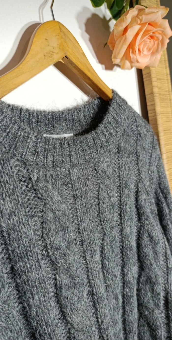 Pull femme torsadé gris anthracite - laine taille 42-44 - photo numéro 5