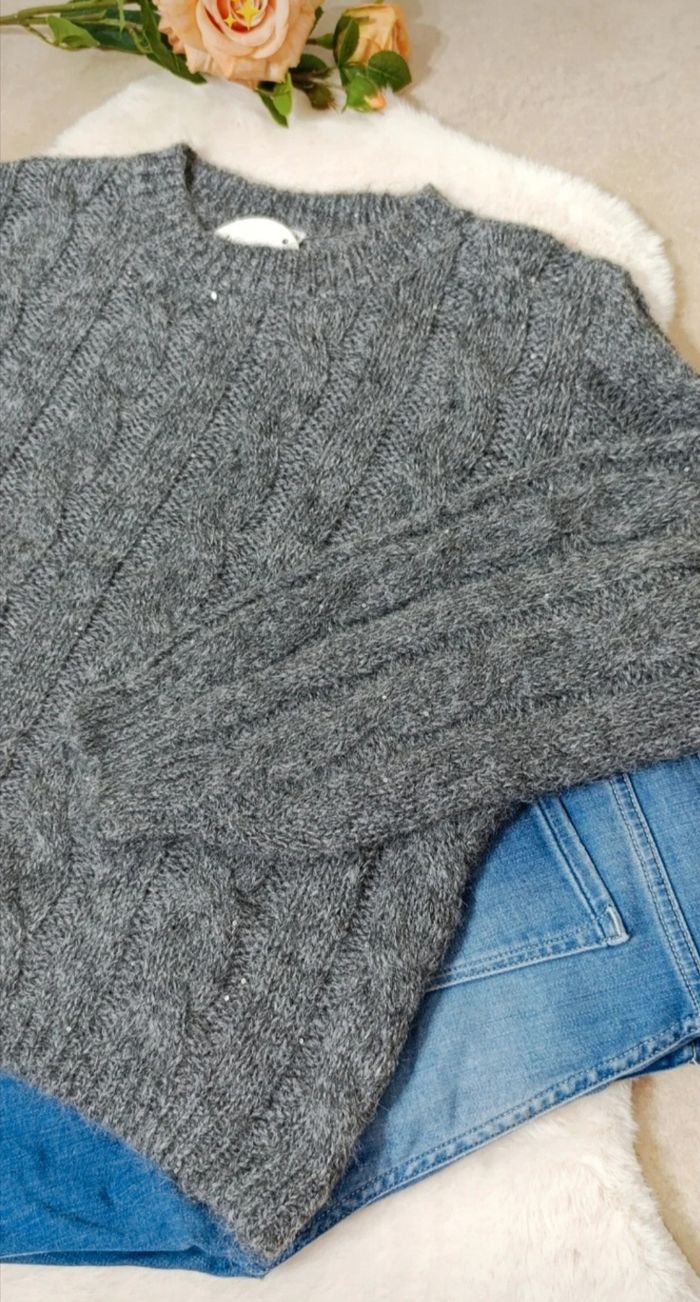 Pull femme torsadé gris anthracite - laine taille 42-44 - photo numéro 3