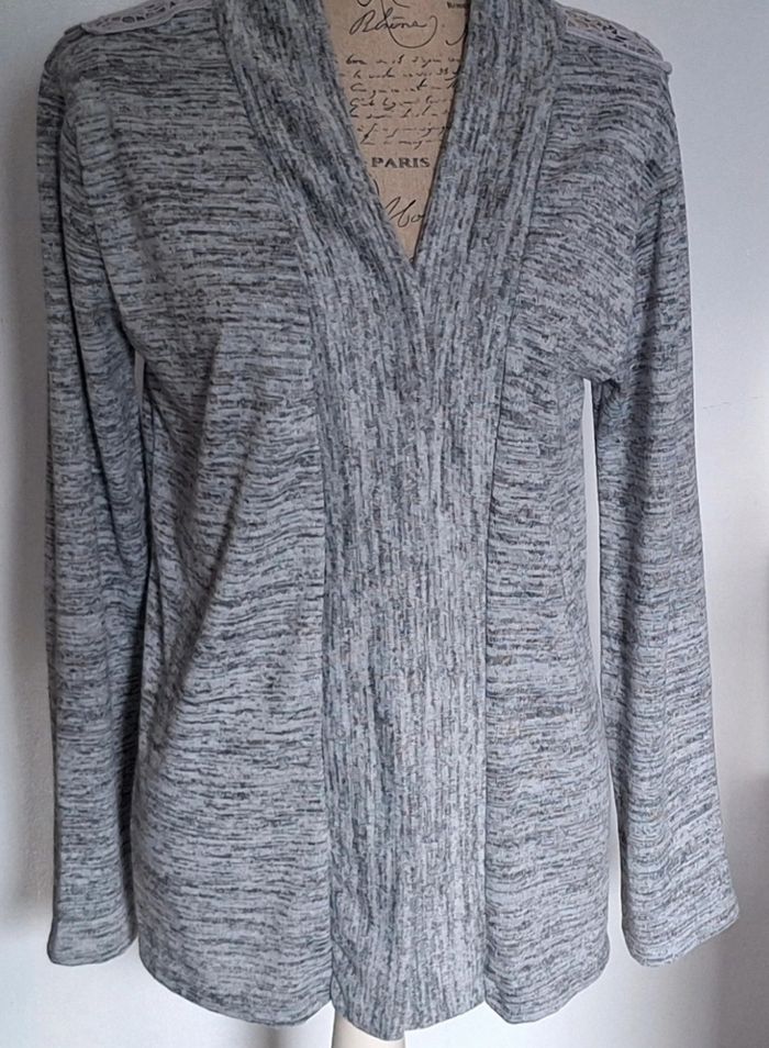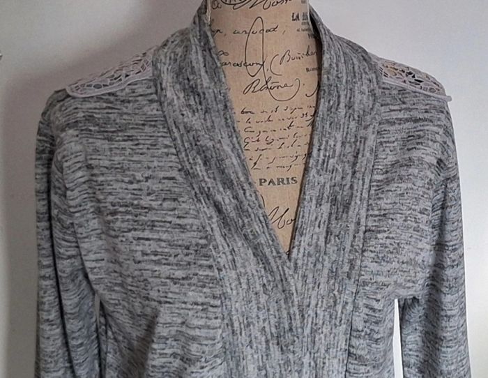 Cardigan au dos en dentelle gris chiné - photo numéro 1