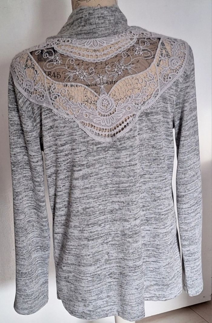 Cardigan au dos en dentelle gris chiné - photo numéro 2