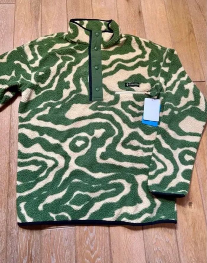 🧥 Polaire Columbia Helvetia – Vert / Beige Superbe polaire Columbia au look outdoor et décontracté, idéale pour affronter l’hiver comme la mi-saison ❄️🍂 Très agréable à porter, chaude sans être lourde, parfaite au quotidien ou pour les sorties nature. ✨ Infos produit : • 📏 Taille : M • 🆕 État : Neuve, jamais portée • 🎨 Coloris : Vert & Beige • 🧸 Matière : Polaire douce et confortable • 🔘 Fermeture par boutons-pression • 📦 Existe aussi en taille S, neuve également (me demander si besoin) 🚀 Envoi rapide et bien protégé 💬 Dispo pour toute question ou photo supplémentaire