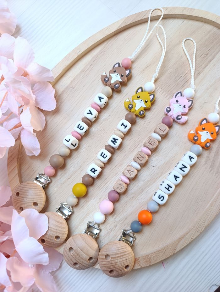 Attaché tétine personnalisée Bois naturel et silicone alimentaire Sans BPA ni autres substances toxiques