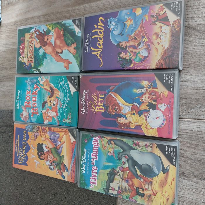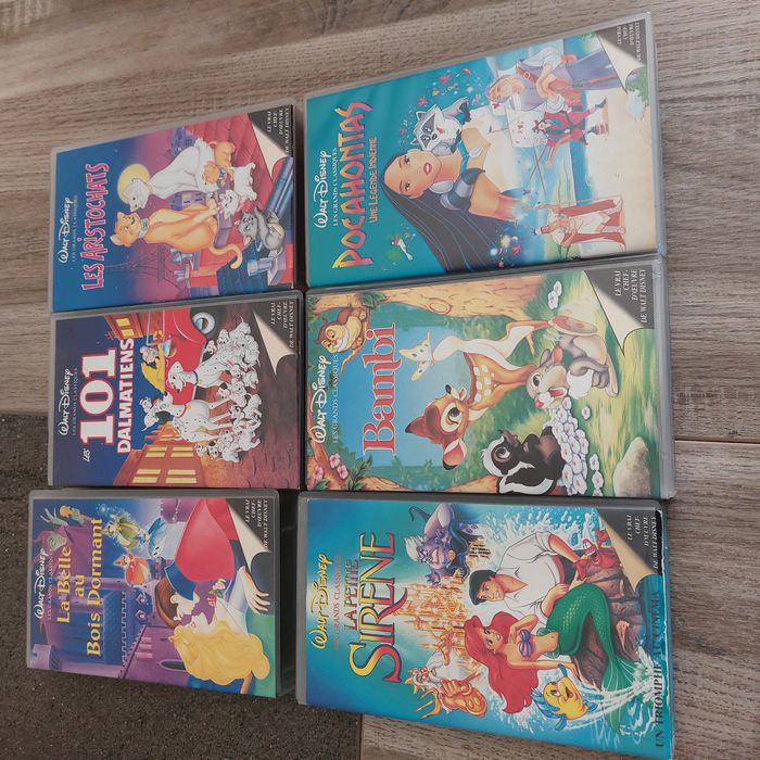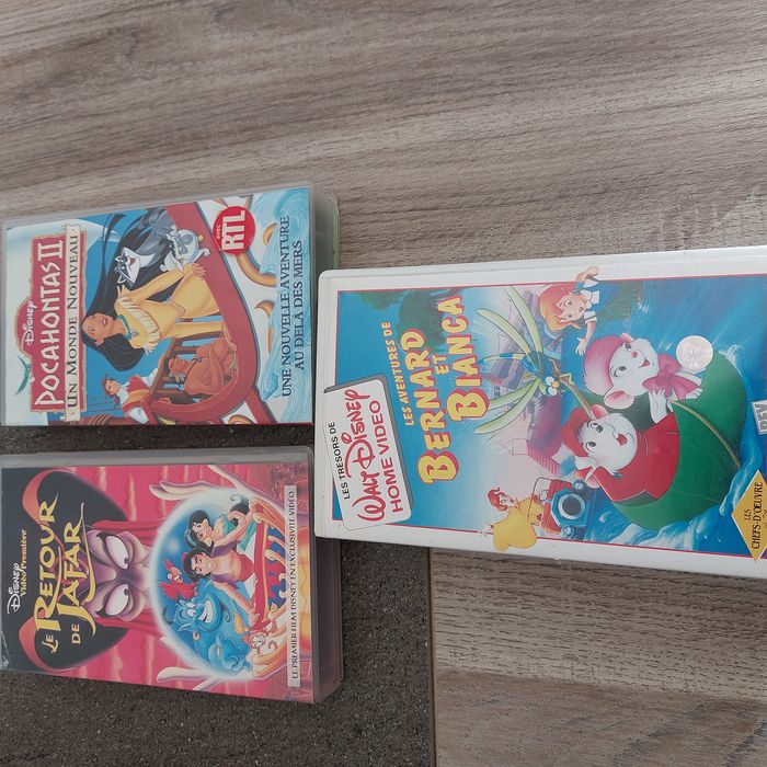 VHS dessin animé Disney Collection Grand Classique parfait état : A Choisir parmi 1 sélection de 26 dessin animés -VHS originale Année 1980-1995- le prix de l'annonce est pour 1 Vhs Merci de me consulter si vous êtes intéressé pour plusieurs titres pour prix et transport -envoi rapide -Voici la liste : Belle au bois dormant - les 101 Dalmatiens- les Aristochats- Le Roi Lion et Roi lion 2 ( honneur de la tribu) - Bambi - La Petite Sirène - Pocahontas ( légende indienne) et Pocahontas 2 - Tarzan- Le Bossu de Notre Dame- Rox et Rouky - Le Livre de Jungle- la belle et la bête - Aladdin- Mulan -Les Aventures de Tigrou-Taram et le Chaudon Magique- Timon et PUMBBA - Blanche Neige et les 7 nains - Fantasia - Marry Poppins - Cendrillon- le Reour de Jafar -la Petite sirene symphonie pour l'harmonie - Bernard et Bianca