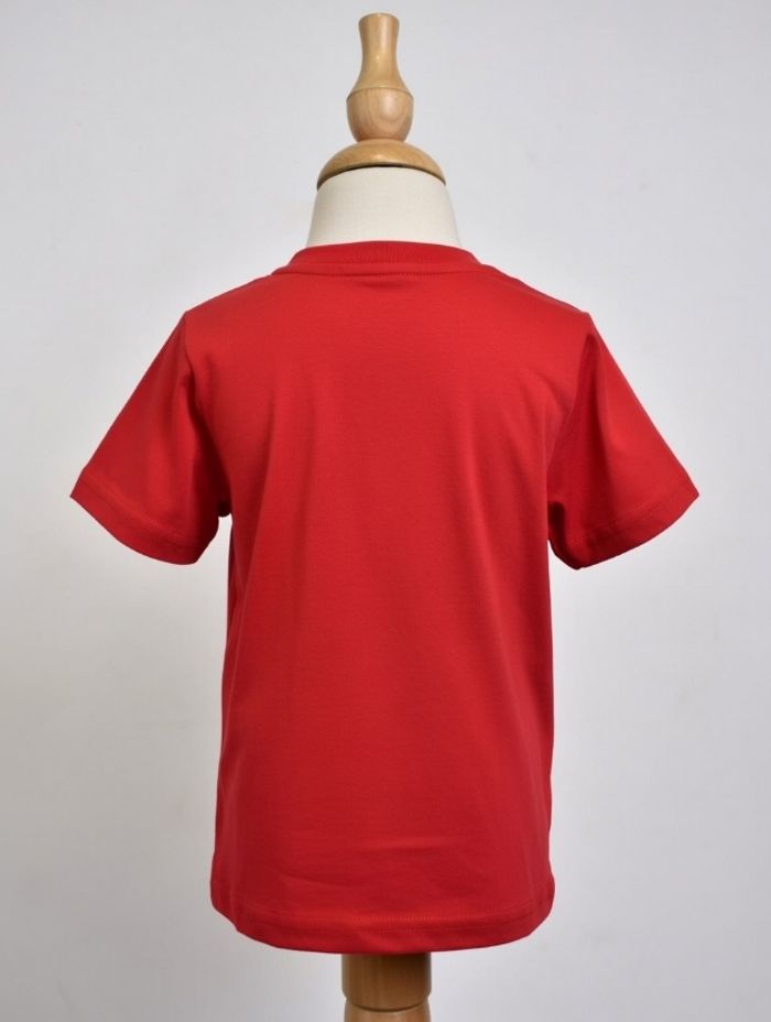 T-shirt rouge vif Timberland enfant, logo arbre blanc poitrine, 100% coton doux. Boutons pression épaule (facile à enfiler), manches courtes. Comme neuf, porté peu, impeccable (pas de tache ni odeur). Taille : 2-4 ans ou 86 cm