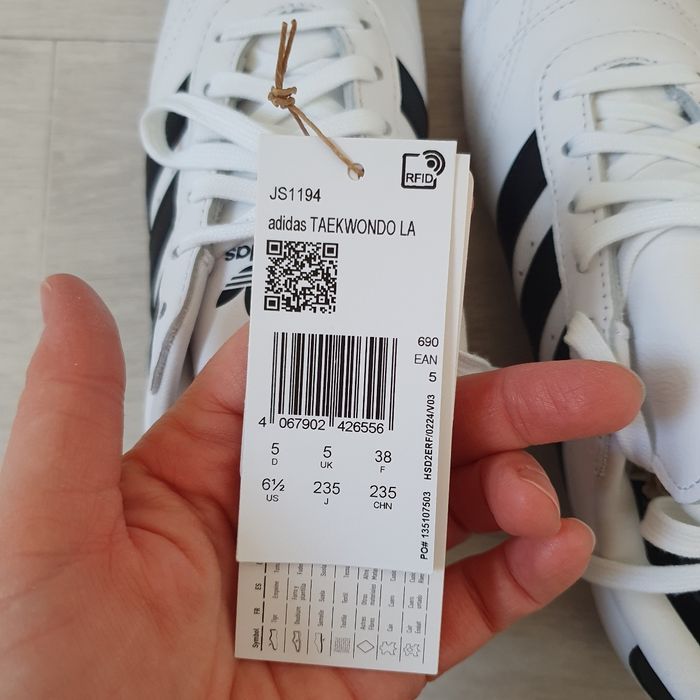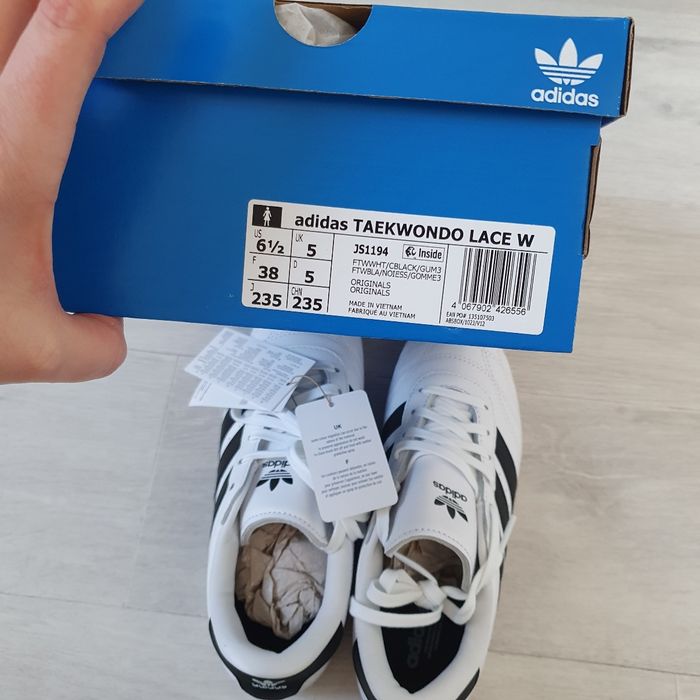 Je vends une paire de baskets Adidas Taekwondo Lace W, taille 38, neuves, jamais portées. Elles sont avec étiquettes et boîte d’origine Adidas. Couleur : Blanc avec bandes noires Sneakers fines, rétro et élégantes N hésitez pas à me contacter pour plus d'informations.