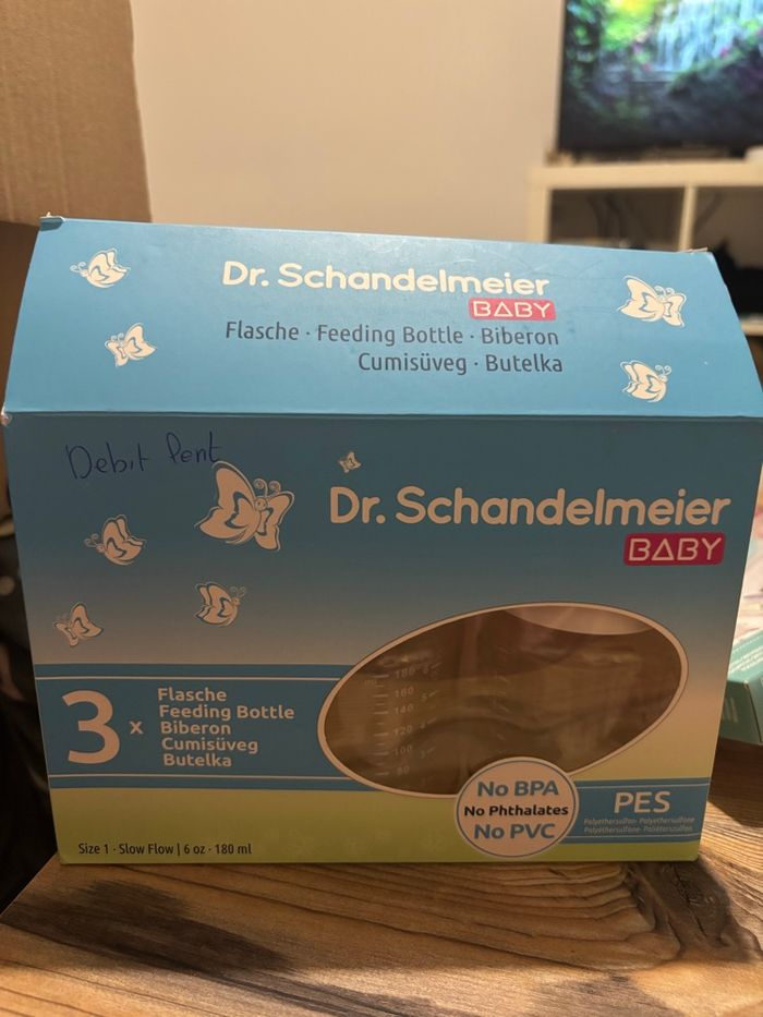 Coffret 3 biberons débit lent Cartons un peu abîmé mais les biberons intact.