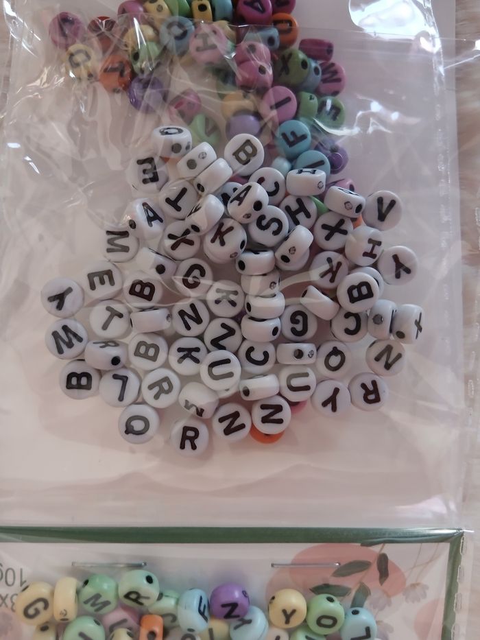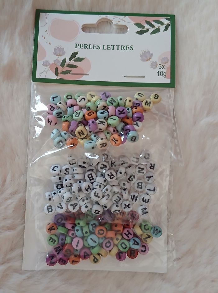Articles neufs, sous emballage d'origine scellé. Paquet de Perles "Lettres"; coloris variés. En plastique // voir photos pour détails