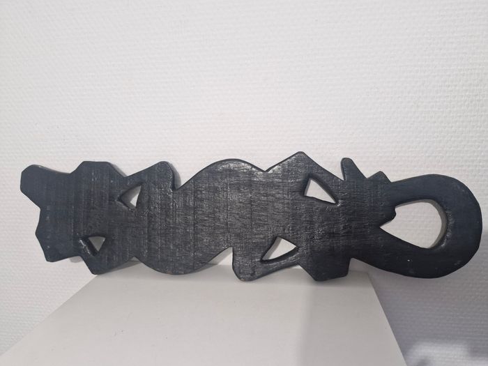 Salamandre décorative en bois sculpté et peint à la main, style ethnique / artisanal. Très beaux motifs en pointillisme multicolore, pièce originale et décorative. ✔ Excellent état ✔ Bois massif ✔ S’accroche facilement au mur Idéale pour une décoration bohème, ethnique ou nature.