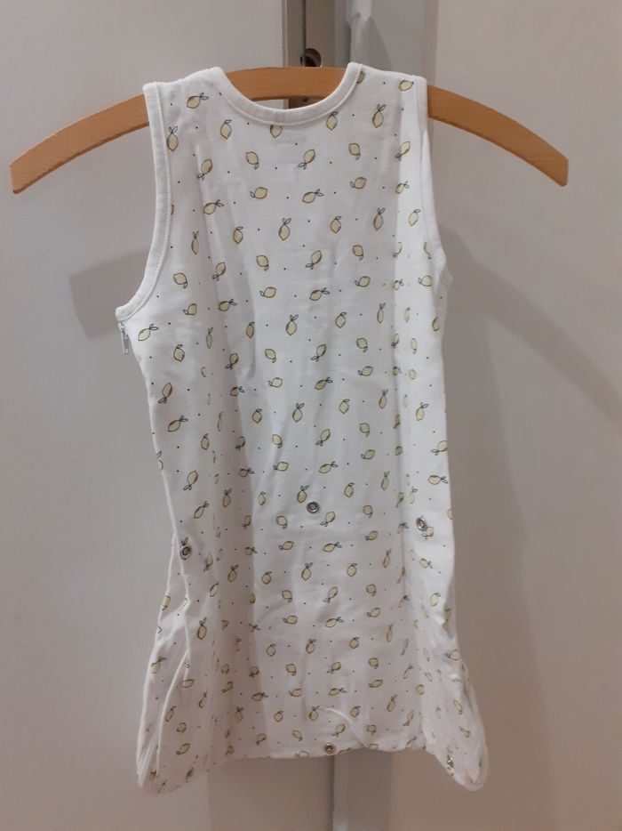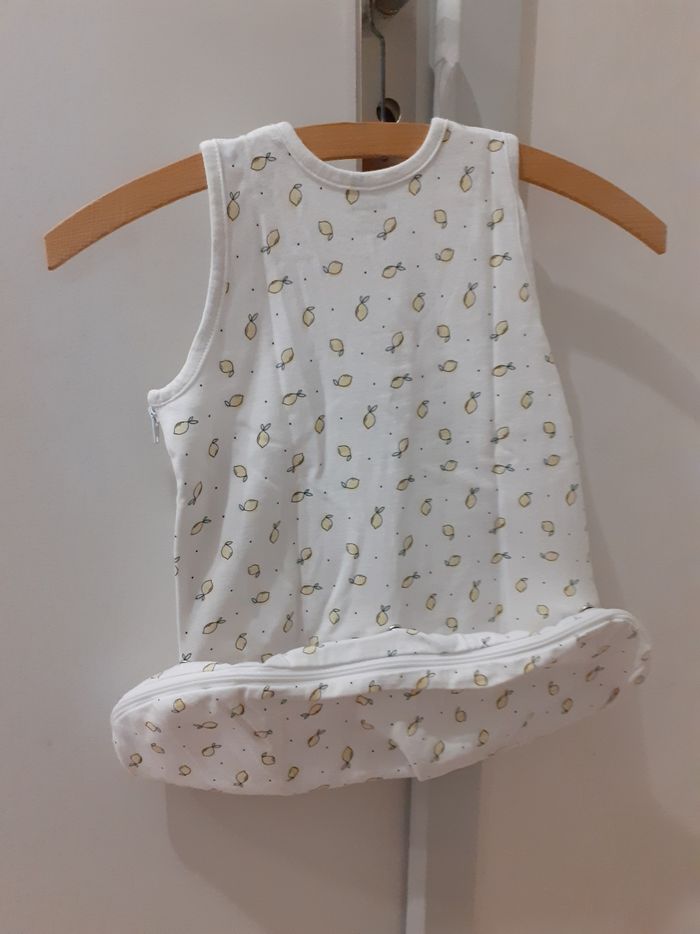 Vends gigoteuse fine, sans manche, 0-6mois, fermeture éclair sur le côté, boutons pressions dans le dos pour raccourcir la longueur