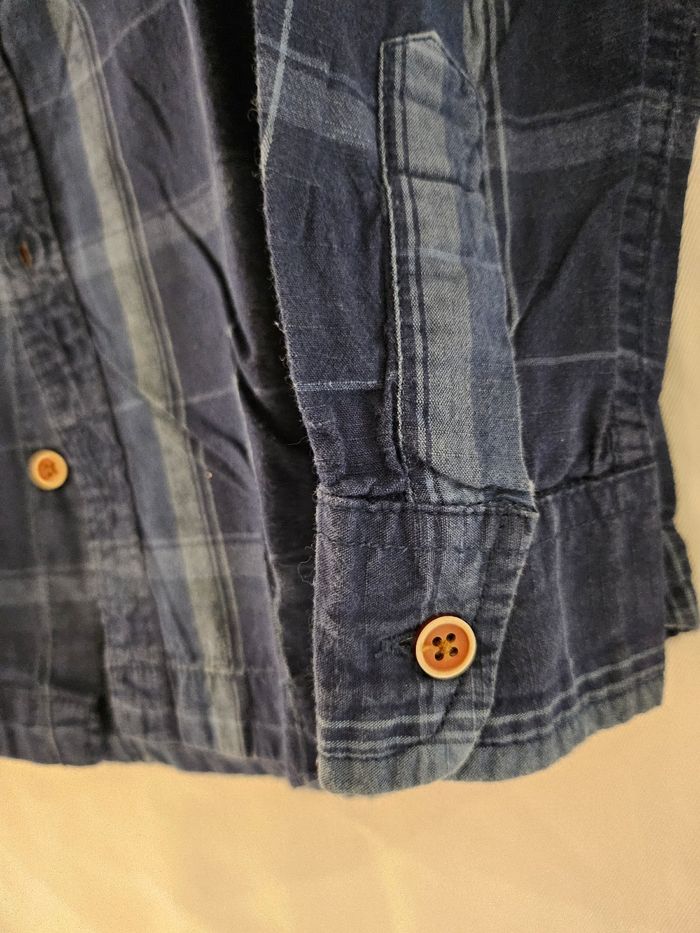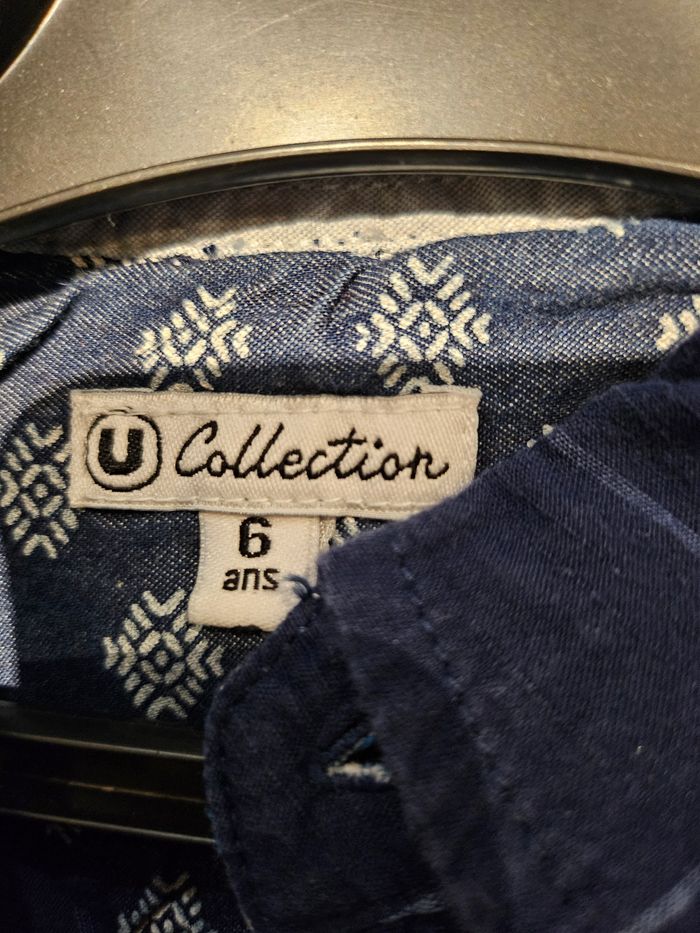 Chemise manches longues. Différents tons de bleu. Boutons en bout de manches. Se ferme avec boutons. Marque : U collection Taille : 6 ans