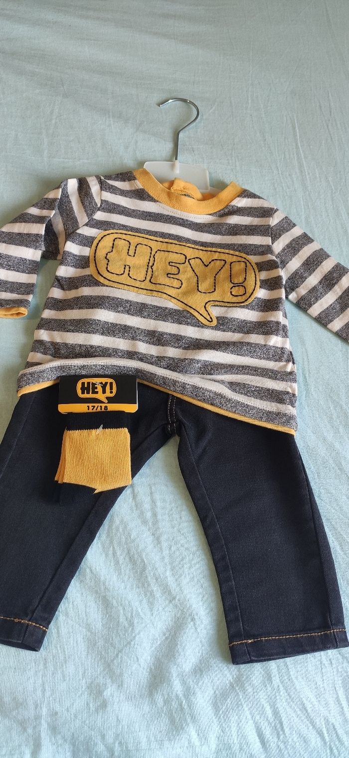 Ensemble 3 pièces bébé garçon 6 mois neuf, composé d'un t-shirt manches longues, d'une paire de chaussettes et d'un pantalon
