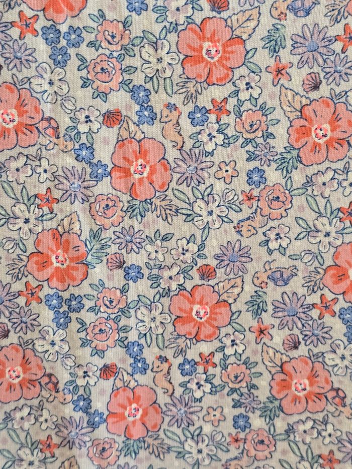 Lien direct vers les tailles équivalentes dans mon dressing : #fdhsarah24mois #fdhsarahSGMJ 📜 Combinaison en matière en jersey imprimé fleurs et hippocampes dans les tons rose, corail, rouge, bleu et lavande sur fond mauve. Ouverture avant et à l'entrejambe par boutons pression fantaisie à motif fleur. Volants sur les épaules avec finitions picots Col rond et bas des jambes avec finition cotelée et picots de couleur écru Ref : KEGIULIA Collection : Nuit douce Taille 📏 : 24 mois 86 cm État 🔍 : Très bon état Marque 🏷️ : Sergent Major Je suis disponible pour toutes questions ou photos supplémentaires. 📦 L’envoi se fait le plus rapidement possible Bon Shopping