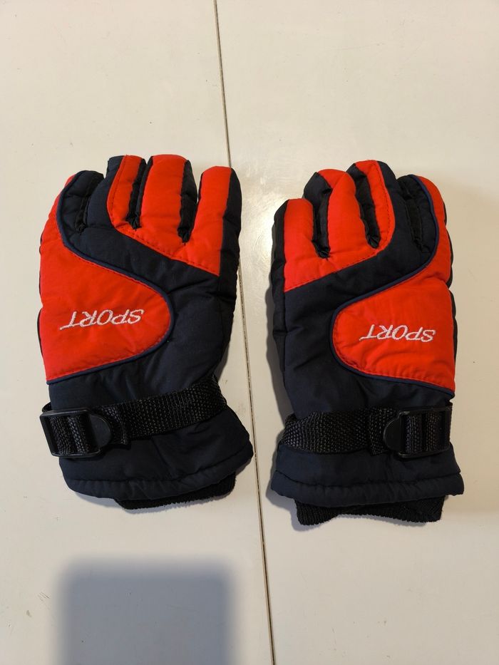 Gants de ski sans marque de taille 8-10 ans Une petite déchirure mais avec un brin de couture c'est réglé Sinon cela n'empêche pas de passer une bonne semaine à la neige