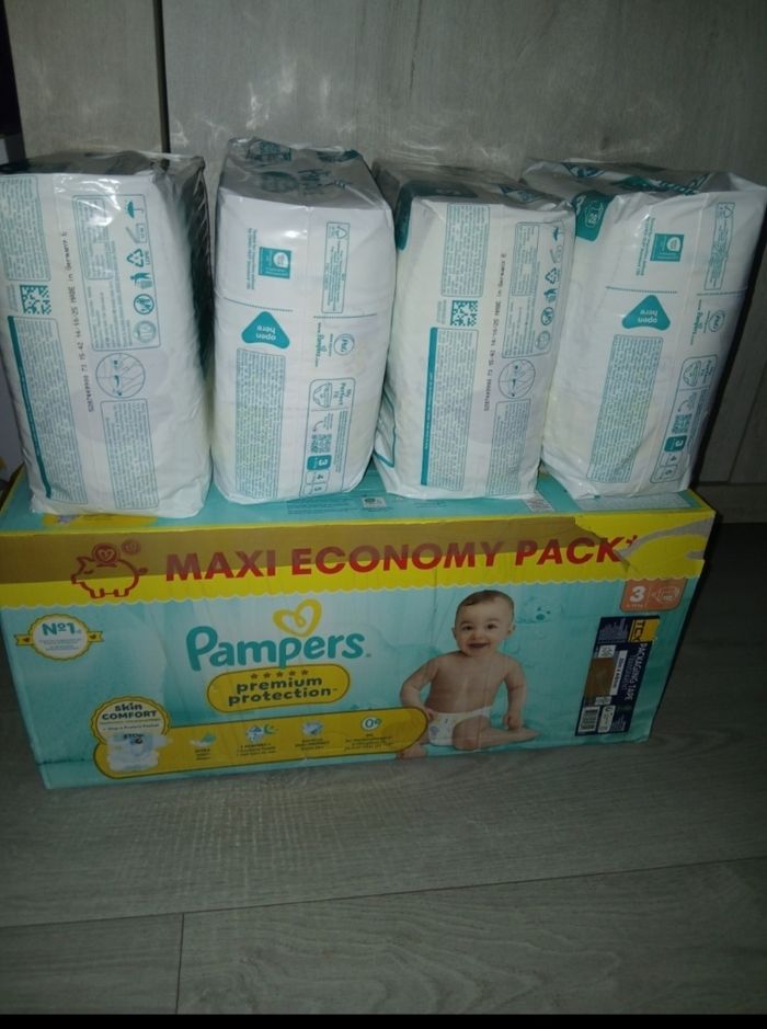 Bonjour Je vends pampers taille 4 Carton fermer et 5 petit paquet qui fais 1 carton aussi