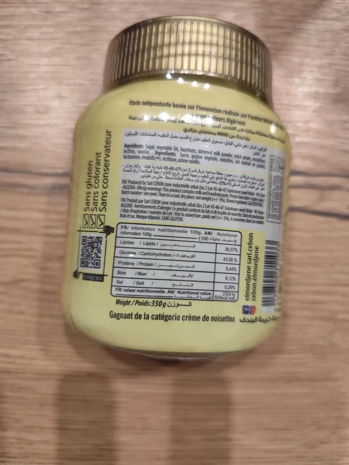 Je vends un pot de pâte à tartiner el mordjene goût noisettes grillées. Contenance 700gr. Prix 14€ NON NÉGOCIABLE SVP.