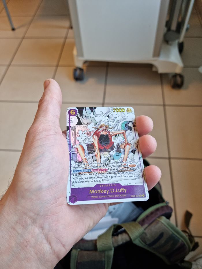 Je vends une carte Monkey D. Luffy du One Piece Card Game. Carte originale Bandai, en très bon état (voir photos), jamais jouée ou immédiatement protégée après ouverture. Personnage : Monkey D. Luffy Série : One Piece Card Game Référence : EB02-061 Rareté : SR (Super Rare) État : Très bon / proche du neuf Envoi rapide et soigné sous protection (sleeve + toploader). N’hésitez pas à me contacter pour plus de photos ou d’informations 😊