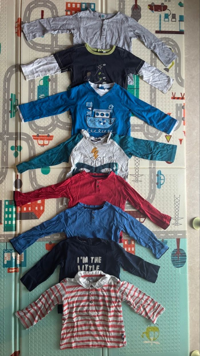 8 hauts manches longues garçon, en très bon état, pas abîmer pas taché 24 mois
