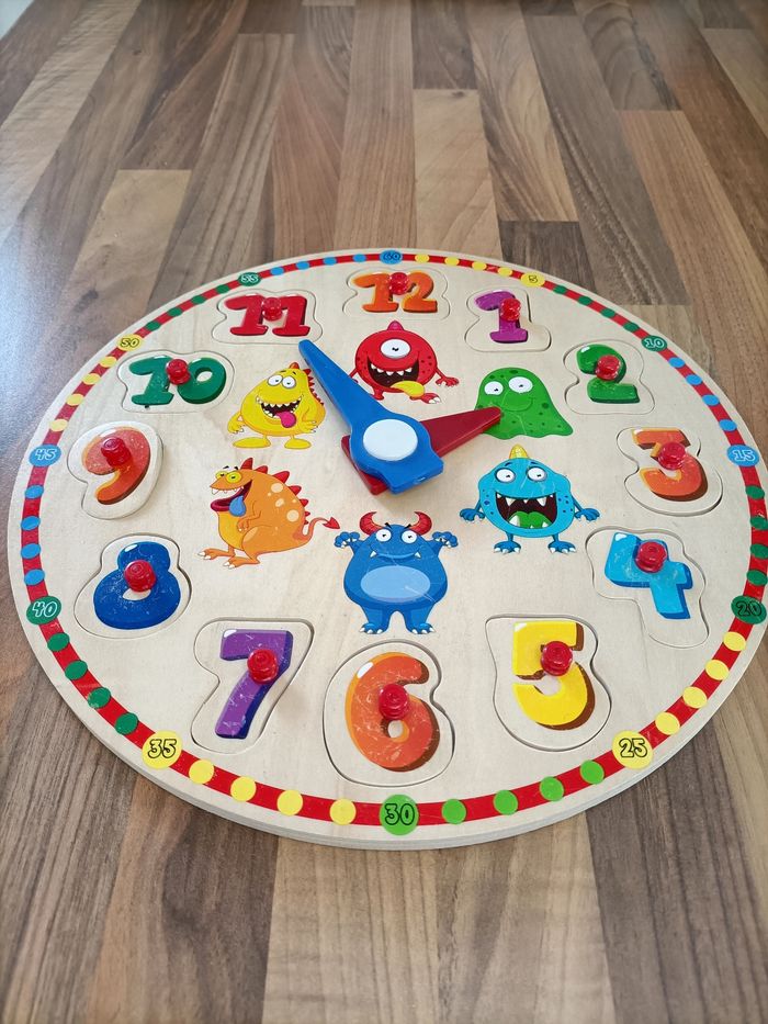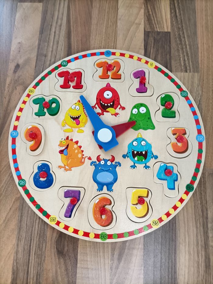 Apprendre l'heure en s'amusant - horloge bois petits monstres - photo numéro 6