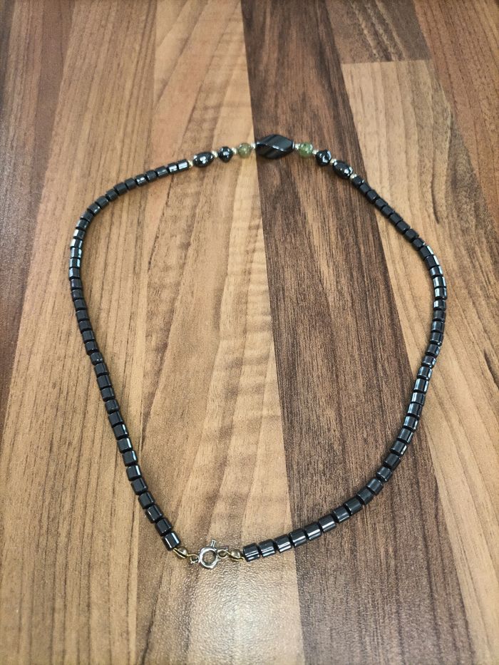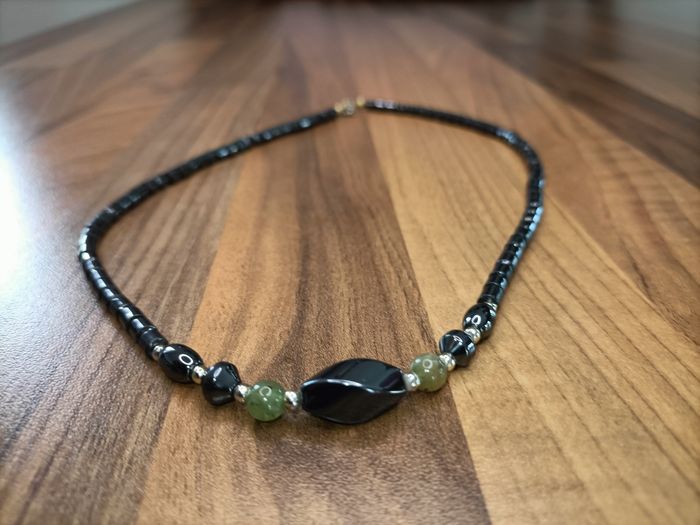 Collier pierres noires et vertes - photo numéro 1