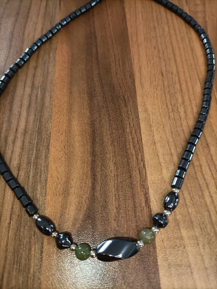 Collier pierres noires et vertes - photo numéro 2