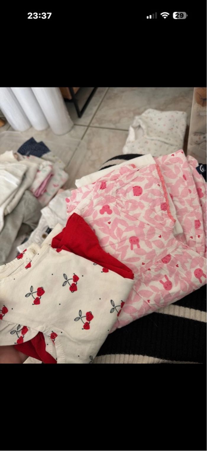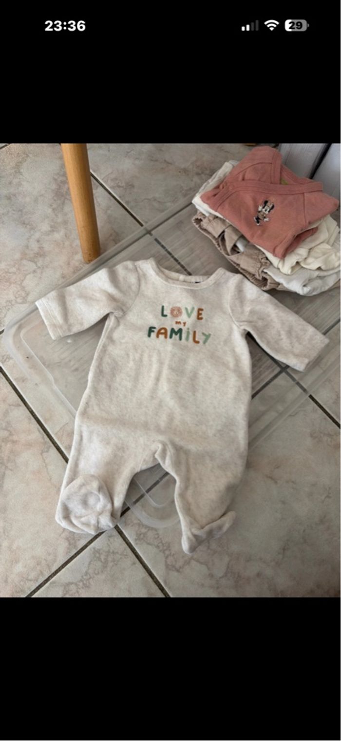 Lot idéal pour premier enfant ou pour les revendeurs. Tout est en excellent état voir neuf pour la plupart. Il y a de tout, ensemble, bodies, pyjama, gilet, bonnet… Il y a 130 vêtements/ accessoires. (Les ensembles où il y a 2/3/4 vêtements je le compte comme 1). De la taille naissance au 6 mois.