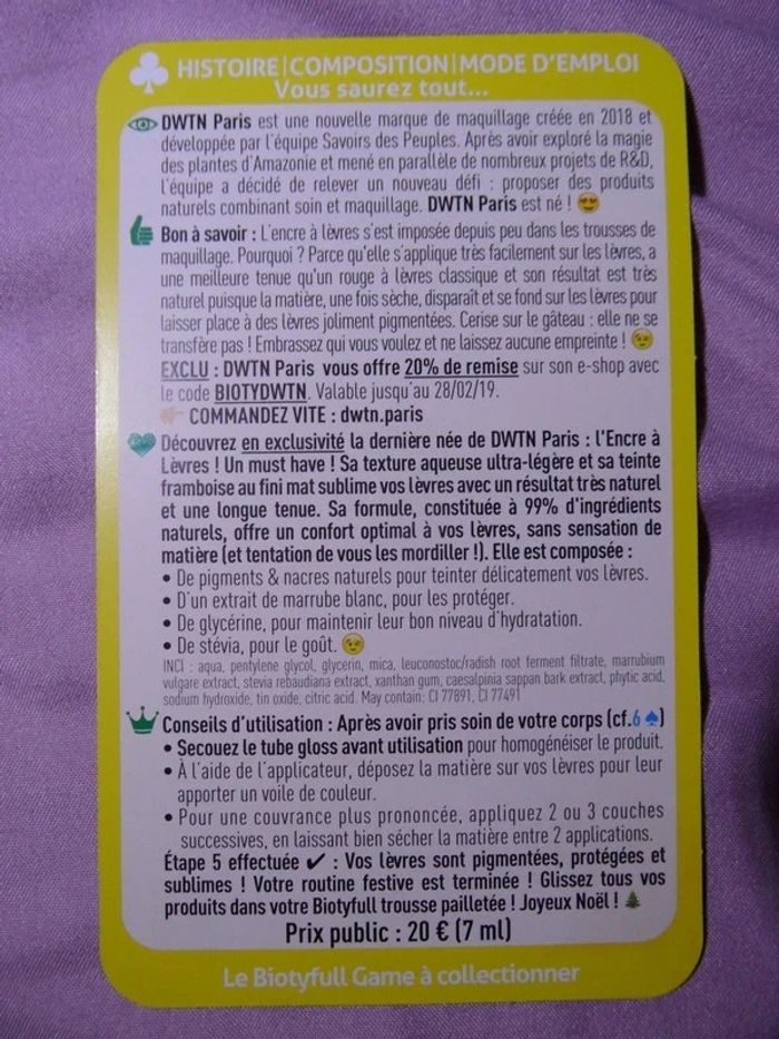 Encre à lèvres teinte framboise, longue tenue, sans transfert, possibilité de passer plusieurs couches afin d'avoir une teinte +/- prononcée. Neuf, jamais servi (pas même ouvert). 7 ml. Valeur 20€. 👉 Remise en main propre secteur Lille CHR possible. 🌺Voir mes autres annonces beaucoup de cosmétiques bio, vegan, solide en vente mais aussi livres, jouets, vêtements femme et enfants, chaussures, accessoires, bijoux... RÉDUCTION SUR LOT DES 2 ARTICLES🌺 📦 Envoi rapide des colis.