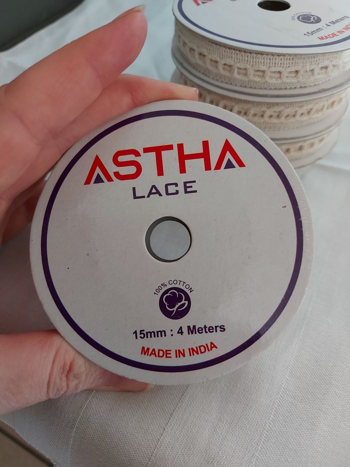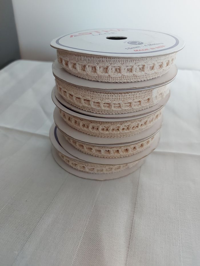 Lot de 5 rouleaux de dentelle beige 15 mm x 4 M par rouleau Astha Neufs