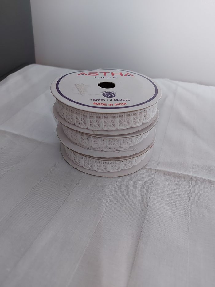 Lot de 3 rouleaux de dentelle blanche 15 mm x 3 M par rouleau Astha Neufs