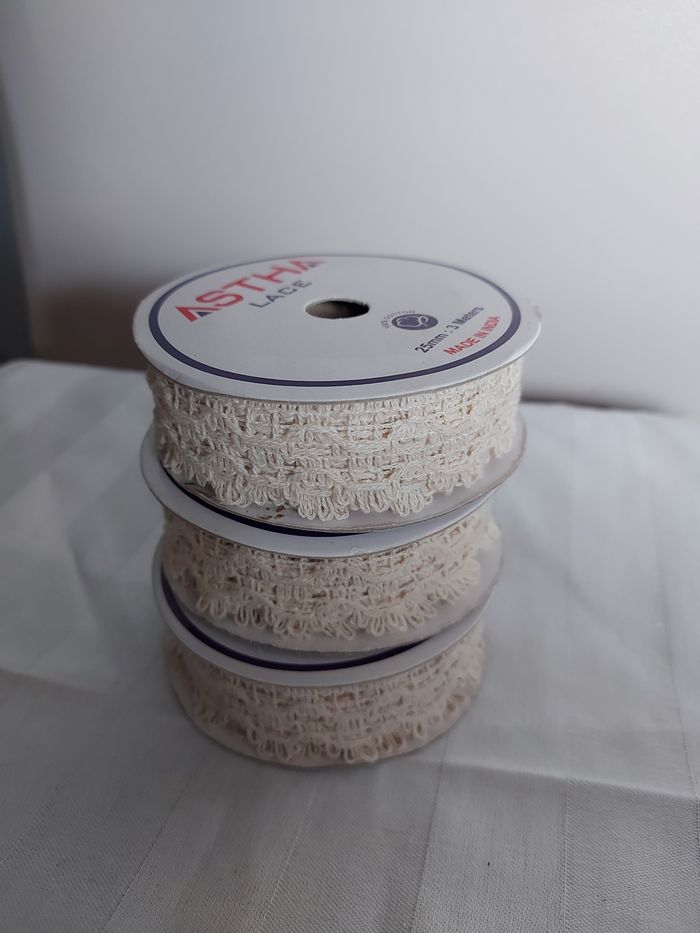 Lot de 3 rouleaux de dentelle beige 25 mm x 3 M Astha Neufs