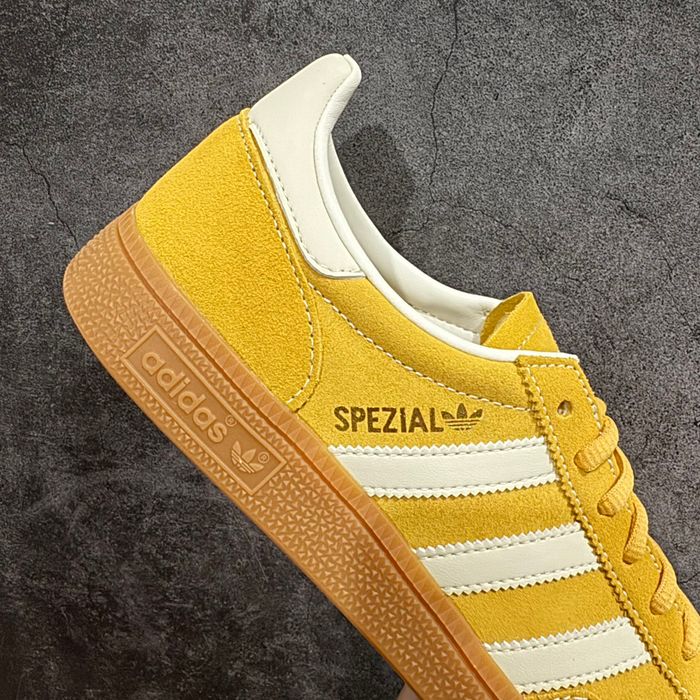 Cette chaussure HANDBALL SPZL s'inspire du handball et cette version arbore une tige majoritairement jaune. Outre l'inscription « Spezial », un logo est également présent sur le côté extérieur. Chaussure d'entraînement de handball rétro, la Handball SPZL partage des similitudes avec la Samba, une chaussure de salle, mais sa qualité de fabrication supérieure et sa gamme de couleurs plus étendue la placent sans conteste au-dessus de la Samba !