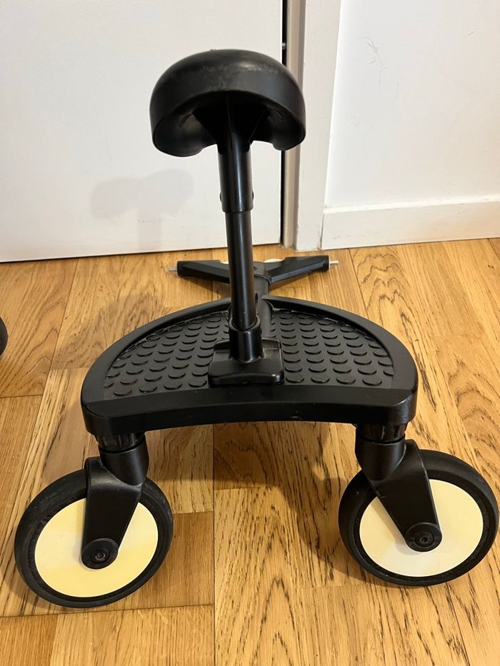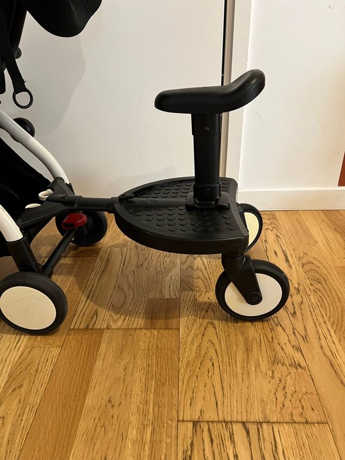Bonjour, Je vends ce board de la marque babyzen. Il est en très bon état. À noter tout de même que les caches des roues ont légèrement jauni et qu’il y a de légères éraflures derrière le siège (cf dernière photo). Cela n’atténue en rien le bon fonctionnement derrière la planche.