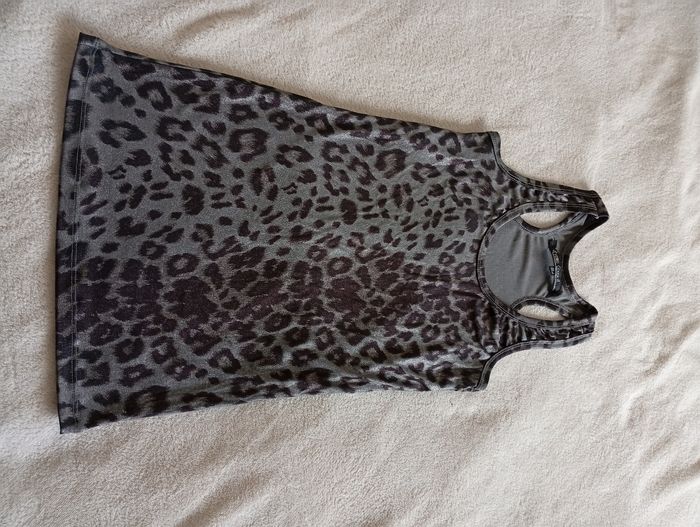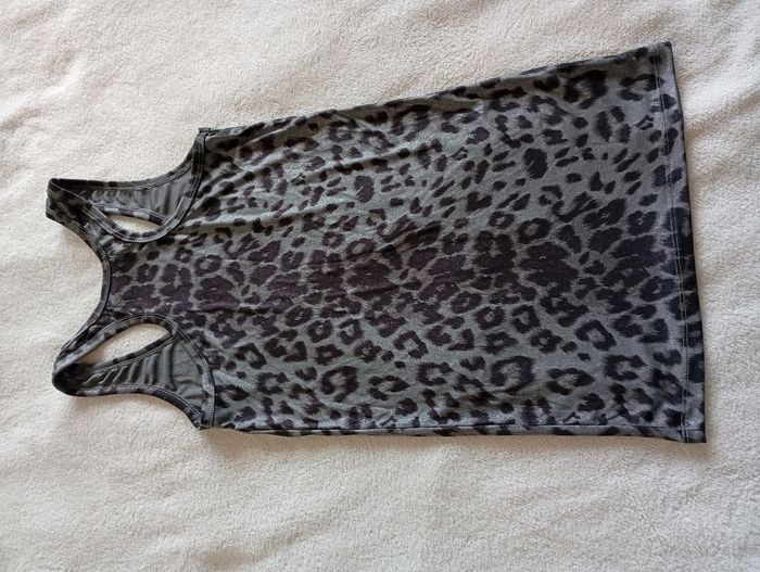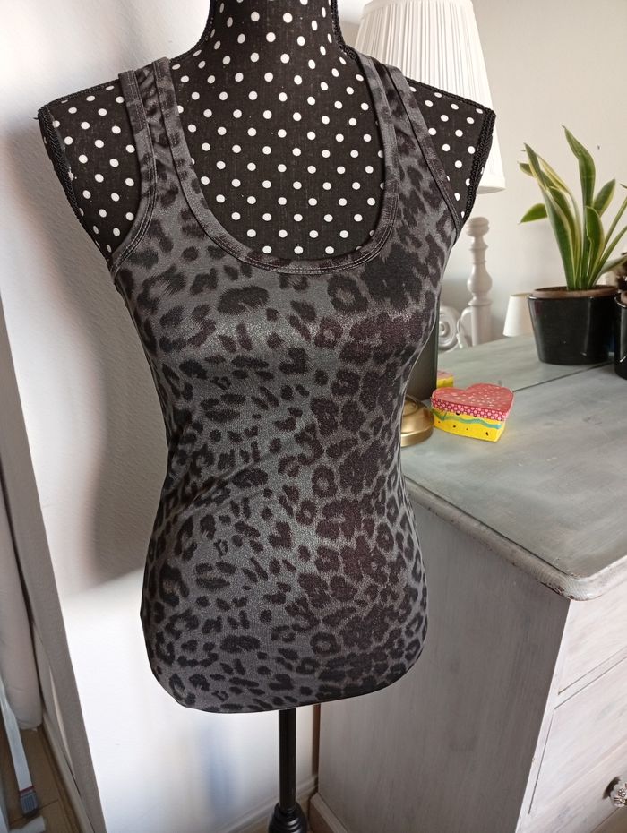Remise sur lot activé. Débardeur imprimé couleur gris ( un peu argenté) et noir en très bon état SAUF un petit fil tiré sur le côté( voir photos). Marque : Evening Collection Taille: S 34-36 Mesures approximatives Longueur : 67cm Épaule à épaule: 19cm Aisselle à aisselle: 31cm Plus aucune étiquette avec la composition. #débardeur36 #debardeurimprimé #debardeurargenté #debardeureveningcollection #eveningcollection