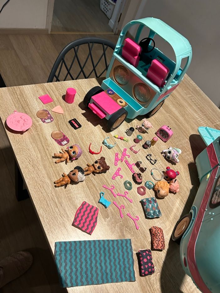 Camping-car LOL avec poupée et accessoires à déjà bien servis mais reste en bon état. Petit hic j’ai du mal à refermer correctement les deux parties mais ne gêne en rien l’utilisation. Envoie rapide via mondial relais ou chronopost. Maison avec animaux de compagnie parfois quelques poils peuvent ce cacher. Remise de lot dans le dressing