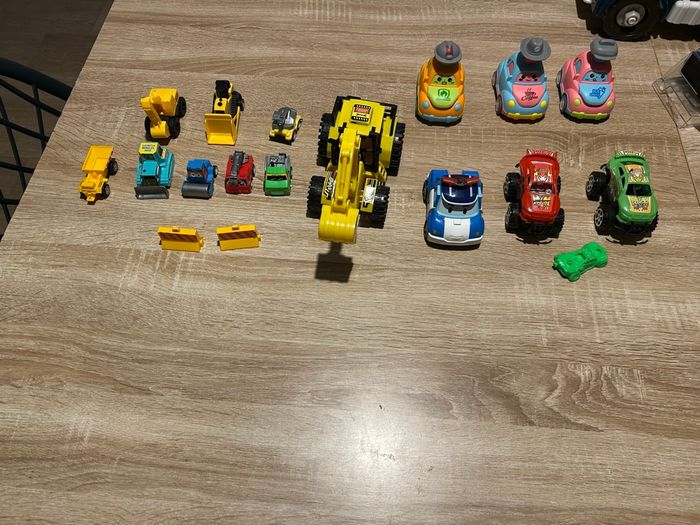 Lot de voiture et enfin de chantier en plastique pour les débuts en très bon état Envoie rapide via mondial relais ou chronopost. Maison avec animaux de compagnie parfois quelques poils peuvent ce cacher. Remise de lot dans le dressing
