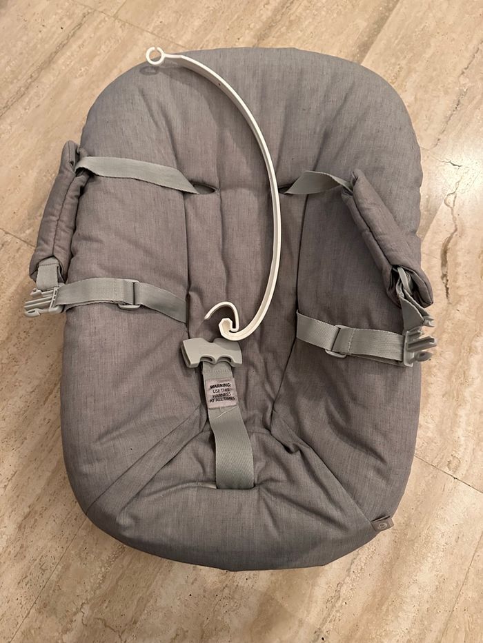 Transat bébé pour chaise tripp trapp en très bon état avec suspension pour jouet.