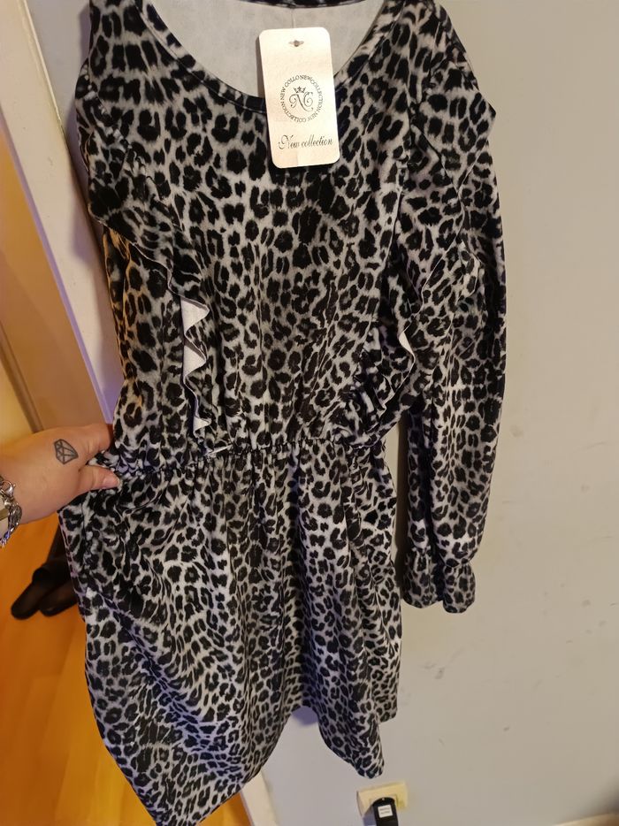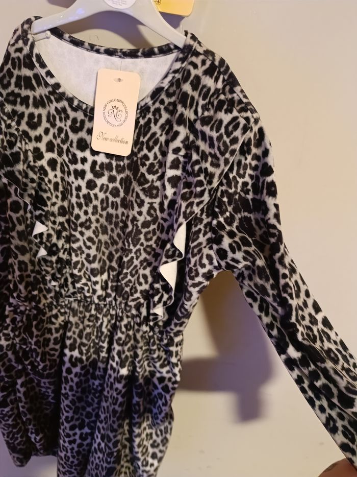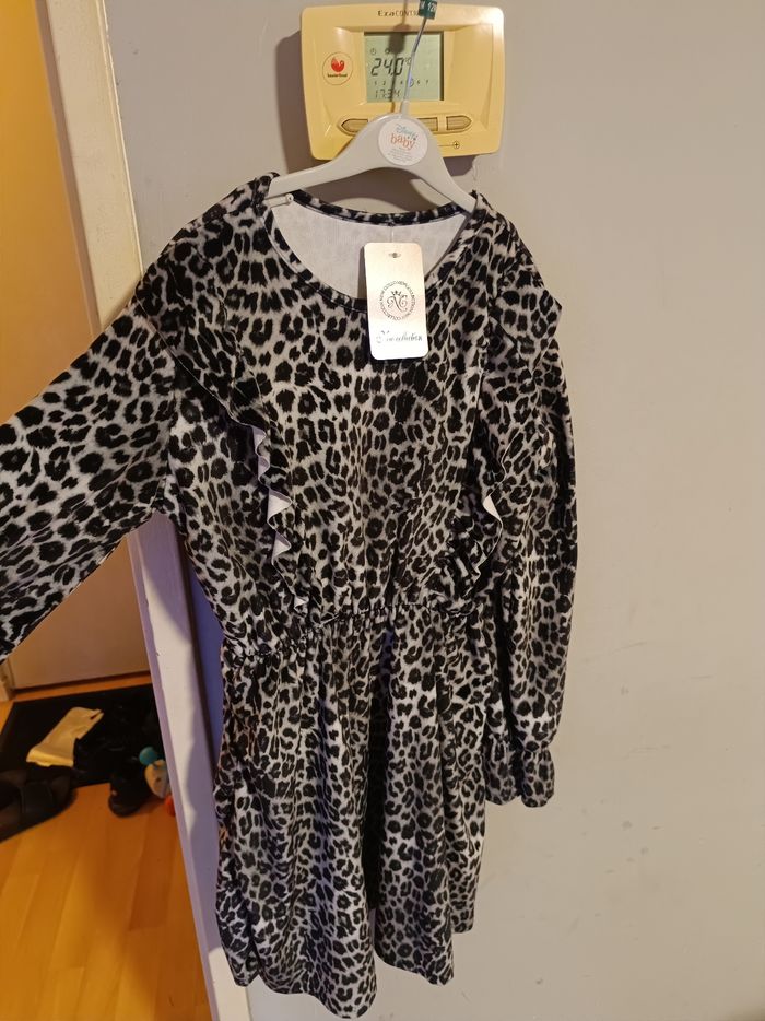 Magnifique robe léopard fille top qualité très doux Manche longue volant sur le devant taille 14 mais taille petit plus pour un 10 ans