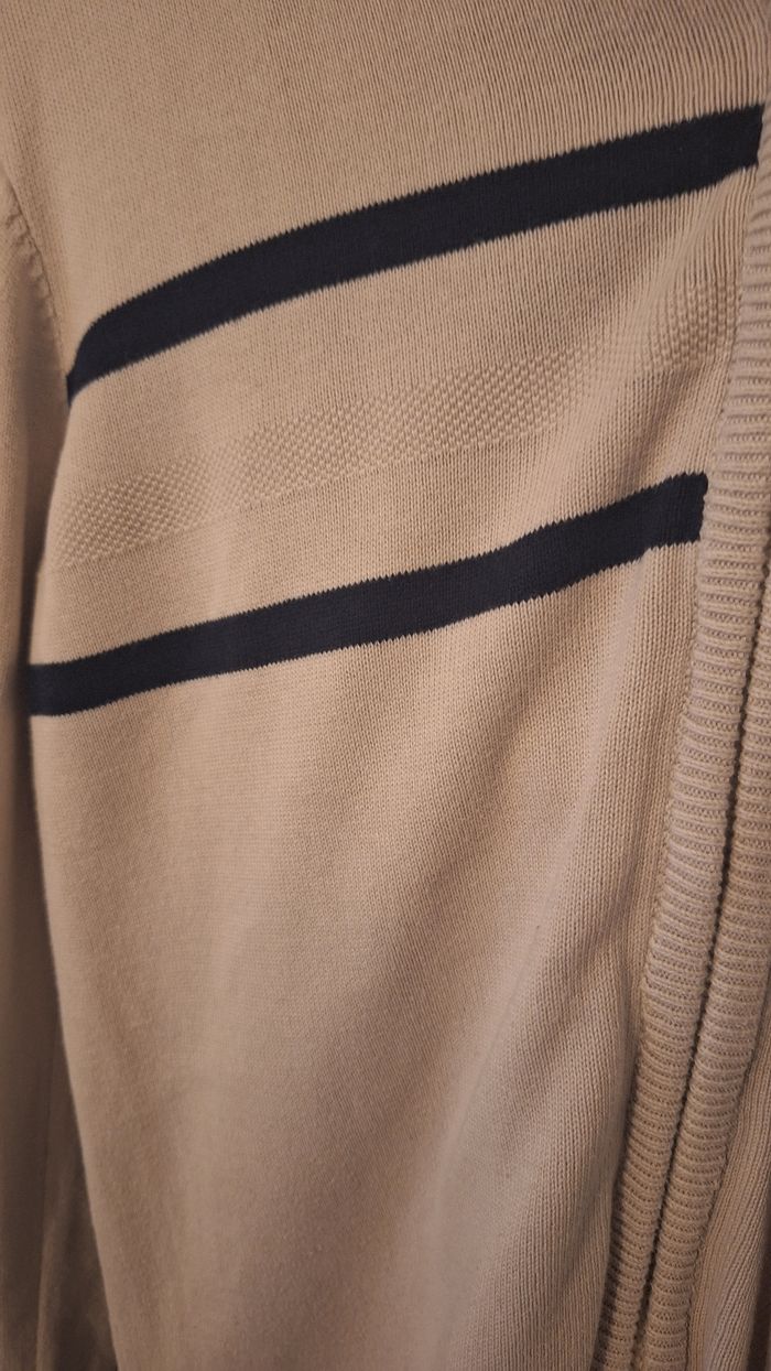 Gilet en tricot à capuche zippé beige et bleu marine  - photo numéro 6