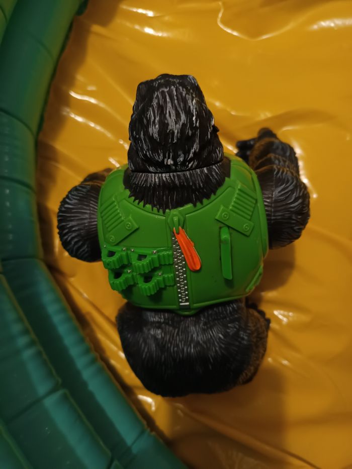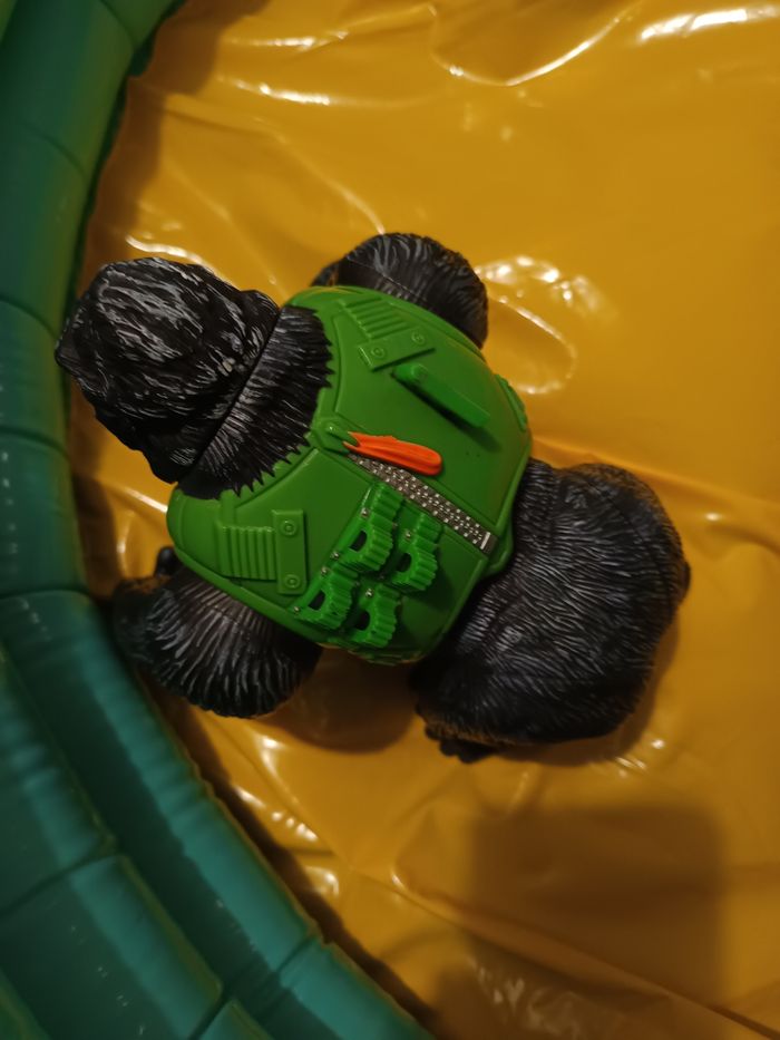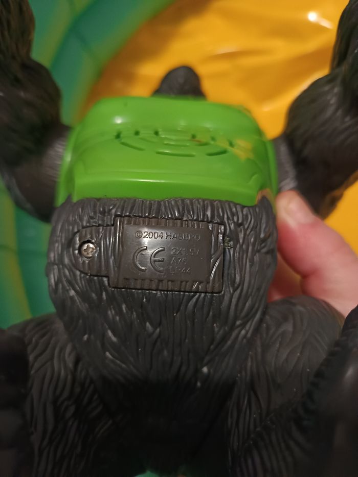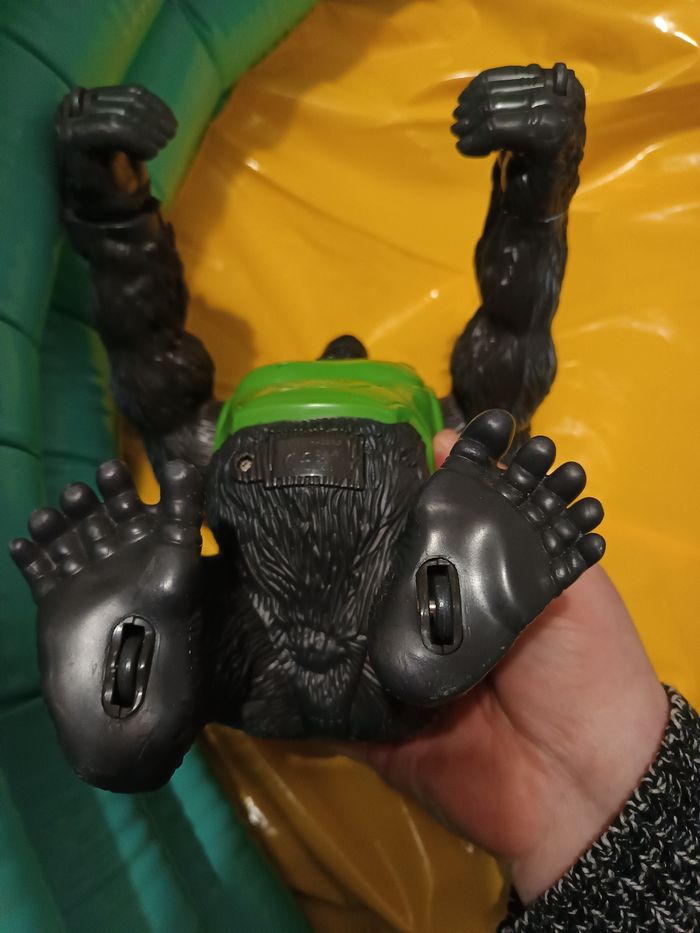 - Figurine du gorille 🦍 kongo mission de la gamme action man édité 2003/2004 par Hasbro. - Bras articulé, petites roues sous les mains et pieds. - Couleur de yeux différents (1 vert et 1 bleu) - Fonctionne normalement avec 2 piles bouton RL44 NON FOURNIES (mais je ne sais pas si fonctionne). - Quelques traces d'utilisation sur le gilet vert - Dimensions : Hauteur 22 cm Largeur 18cm Longueur 20cm