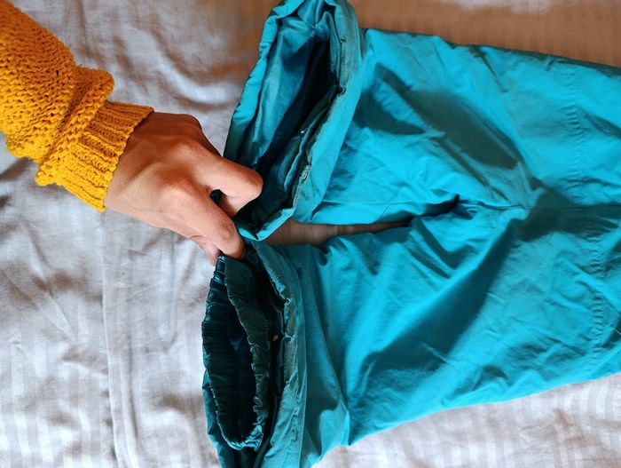 Le bas du pantalon est légèrement abîmé voir photo Et la veste a deux petites tâches mais ne gêne en rien à son utilisation.