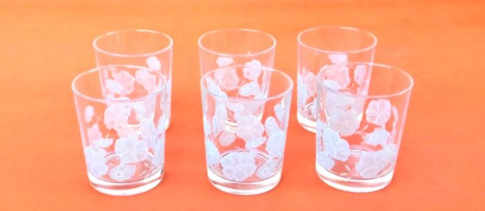 Années 1970 6 Verres  Verre transparent à décor floral Made in France  - photo numéro 1