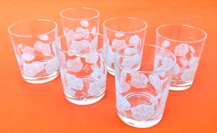 Années 1970 6 Verres Verre transparent à décor floral Made in France