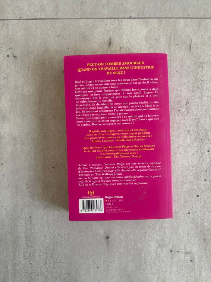 Je vends ce roman "Love en direct" de Laurelin Paige et Sierra Simone, édition brochée. - Titre : Love en direct - Auteurs : Laurelin Paige, Sierra Simone - Genre : Roman - Éditeur : Hugo Roman - Marque de plis sur la quatrième de couverture et un coin abîmé État satisfaisant N'hésitez pas à me contacter pour plus d'informations ! Envoie rapide et soigné