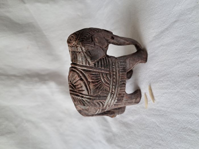 Statuette éléphant en bois gravé Dimensions : 8 x 9 x 3,5 cm Poids : 100 grammes Neuve