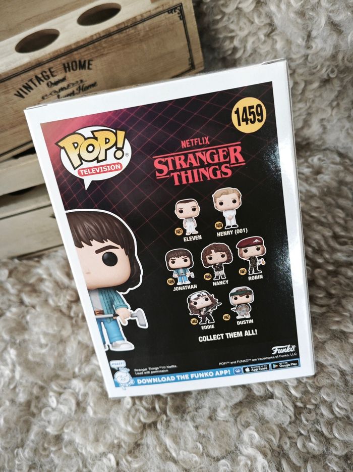 Funko Pop Stranger Jonathan 1459 Jamais exposée et jamais sortie de la boîte Conservée à l'abri de la lumière dans une boîte carton