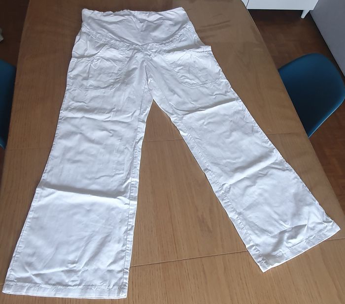 Lot vêtements de maternité : - pantalon gris style jogging calin kalin taille 34/36 - pantalon noir avec ceinture et réglable à la taille stéréo maman taille S - pantalon blanc réglable à la taille ligne maternité - pantalon jean réglable à la taille regular taille 38 - jupe en jean réglable à la taille calin kalin taille 38 - legging blanc ligne maternité taille 38/40 - legging collant noir taille S - robe / tunique noire et blanche stéréo maman taille S _ tunique noire et blanche avec ceinture calin kalin taille 36 - robe bleu marine avec fleurs maternité taille 38 - tee-shirt / tunique rouge stéréo maman taille S - tee-shirt / tunique noire et blanche stéréo maman taille S - pull fin marron bébé dort avec inscription dans le dos chuttt ligne maternité taille 1 - débardeur noir et blanc maternité taille S - débardeur bleu à fleurs maternité taille S Les 3 derniers vêtements ont été utilisé en fin de grossesse ou après accouchement mais ne sont pas des habits spécial maternité donc je donne avec le lot : - débardeur bleu marine à pois rouge kiabi taille S - débardeur bleu pimkie (utilisé mais pas de grossesse) - tee-shirt rose esprit taille S (utilisé mais pas de grossesse)
