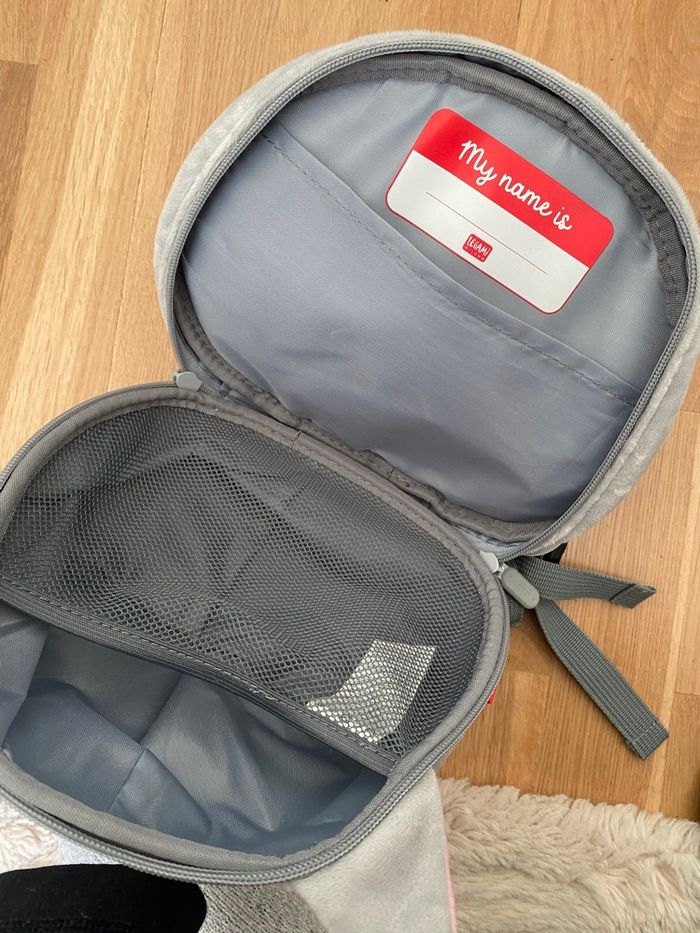 Sac à dos neuf, jamais utilisé ! Valeur : 30€ Fermeture éclair pratique Étiquette intérieure pour écrire le nom du propriétaire du sac Compartiment principal en tissu à mailles Poche intérieure plate Dos respirant Bretelles matelassées, respirantes et réglables Ceinture ventrale réglable Sangle dotée d’une poignée pour les parents, à accrocher au sac à dos à l’aide d’un mousqueton Matériau : EVA, peluche, élasthanne, PET Dimensions : L 22 x H 21 x W 11 cm
