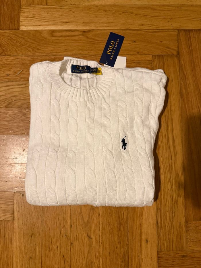 Pull Ralph Lauren torsadé Neuf avec étiquette Taille M Couleur blanc