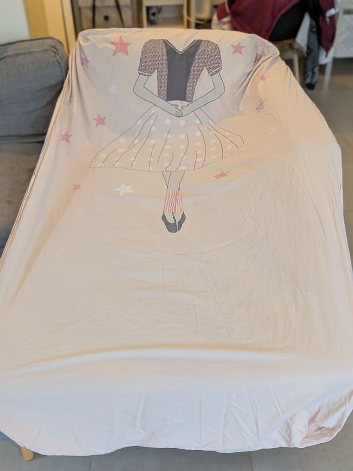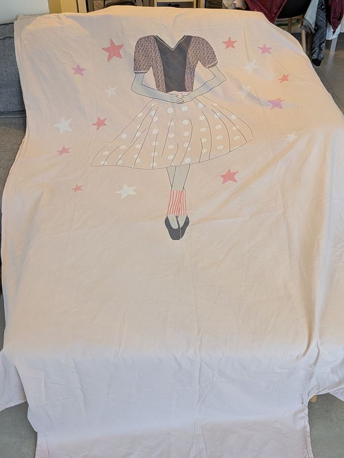 🌟✨2 jolies housses de couette 🌟✨ La première à 2 faces différentes (photos 2-3) Avec la deuxième je peux donner le drap housse mais il a 2 petites tâches Les 2 housse de couette en très bon état (+le drap housse si vous le voulez) pour 5€ Pour un lit 1 place : 90X190